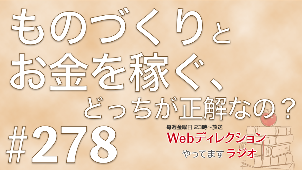 Webディレクションやってますラジオ#278 「忙しいだけで日々、「成長の時間」を取りたい」「「ものづくりVSお金を稼ぐ」はどう捉える?」「大きなひよこを探していました」